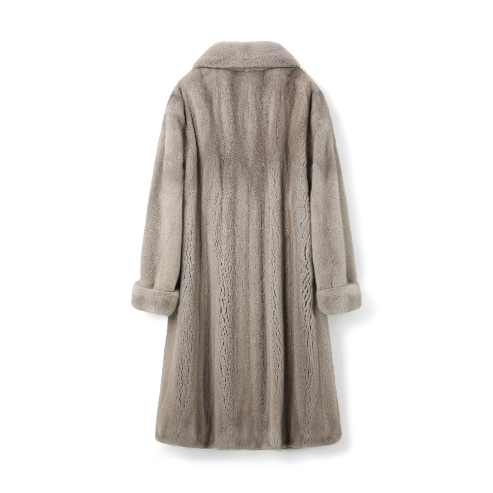 复古公馆・深棕翻领貂绒大衣