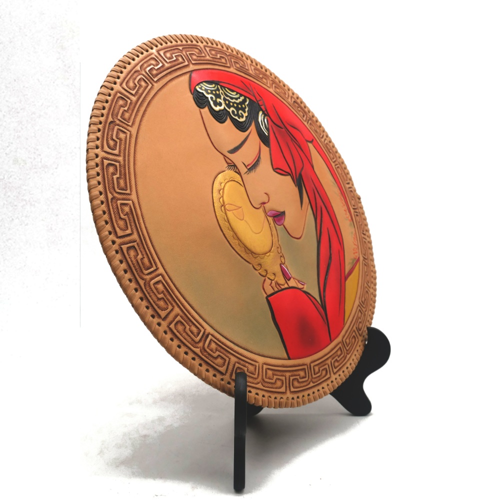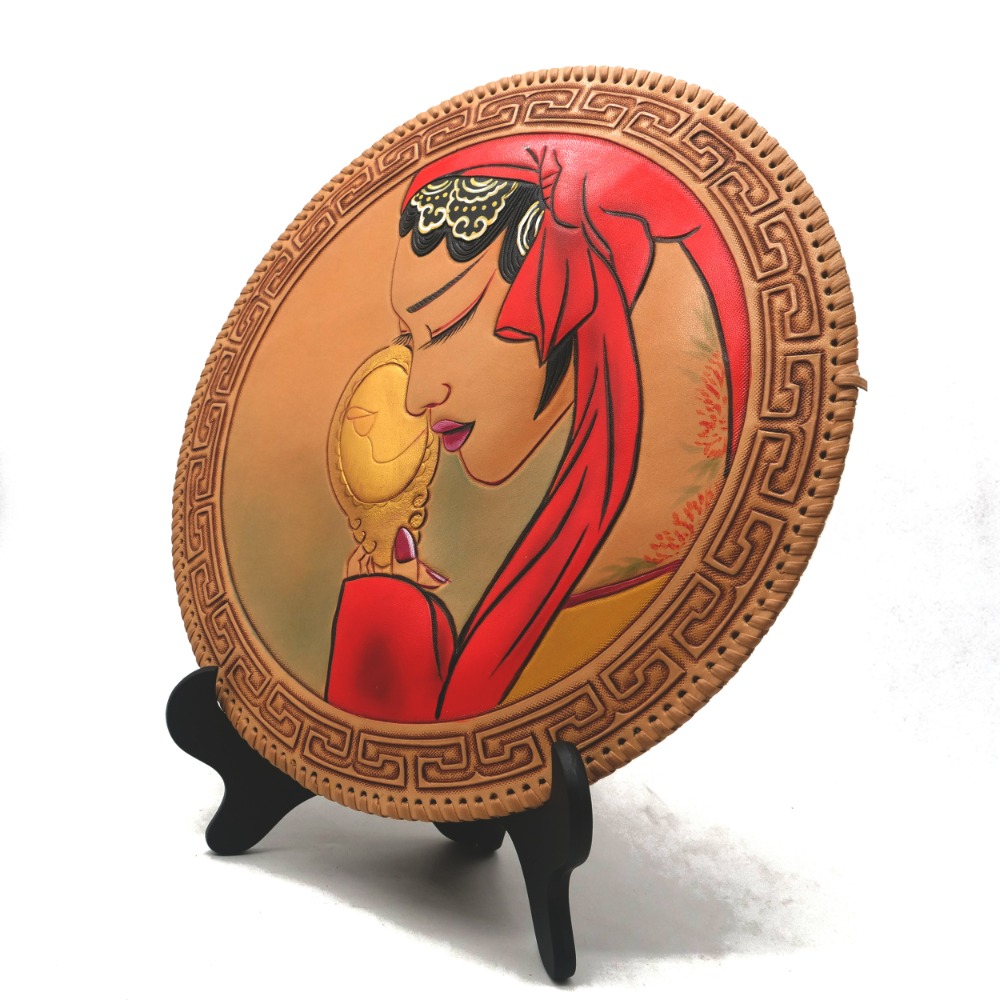 对镜贴妆圆盘摆件